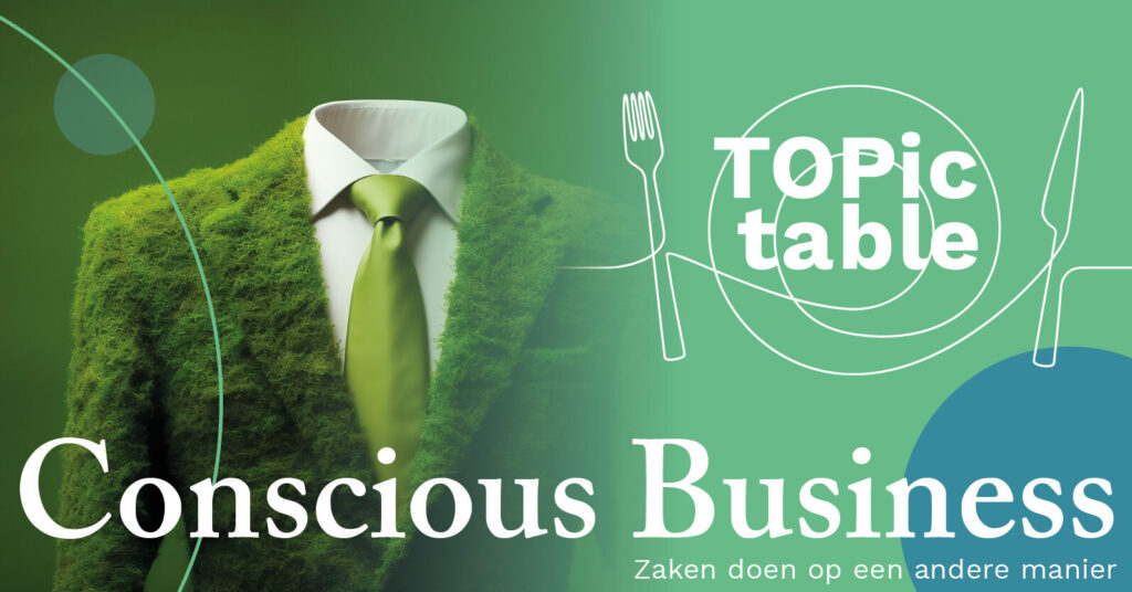 Een duurzaam businessmodel vraagt niet alleen veel van je organisatie, maar ook van de markt waarin je opereert. Bij de transitie naar duurzaamheid is lef in leiderschap nodig om succesvol te kunnen zijn. Daarover spraken vertegenwoordigers uit diverse sectoren met elkaar tijdens de tweede TOPic table met als thema ‘Conscious Business’.